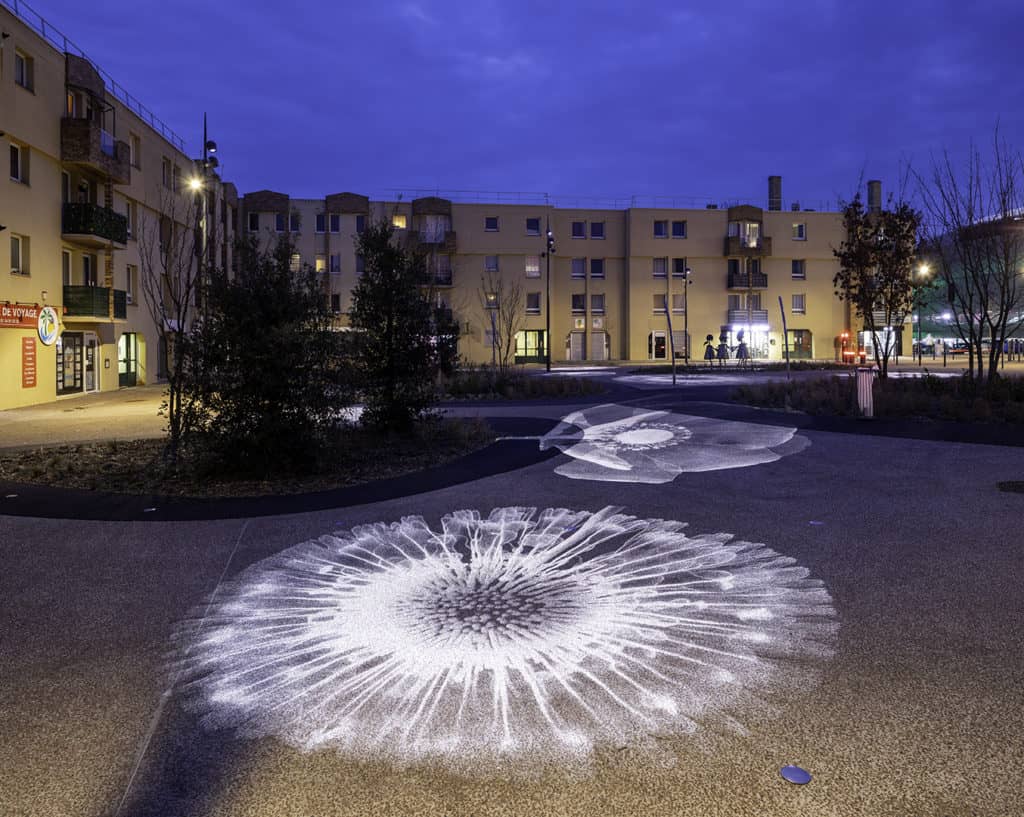 **X-Bloom** — Plaisir, France. An artistic lighting installation exploring the boundary between design and light sculpture.